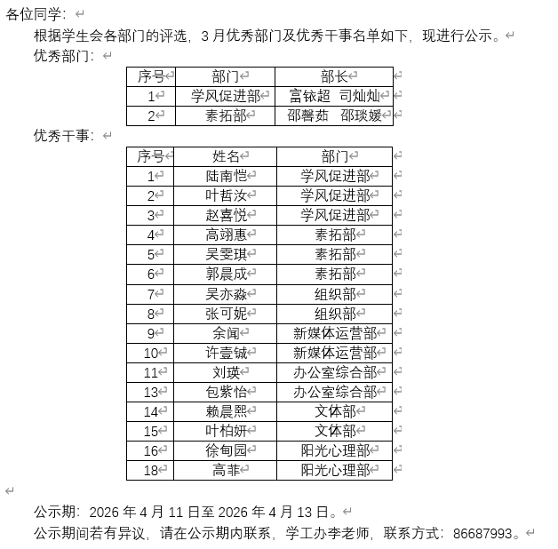考勤公示
